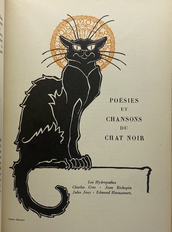 Les Laboratoires Carlier Joinville-Le-Pont (Seine) 1938 2 volumes de 10 & 3 fascicules en feuilles, pagination continue de 236 & 72 pp. L’ensemble sous étui. Illustrations in & hors-texte en noir et couleurs par Toulouse-Lautrec, Zyg Brunner, Dignimont, Charles Léandre, Mich, Lucien Boucher. Poesies et chansons du Chat Noir, le theatre d'ombre, la chanson sentimentale, Paul Delmet et Gabriel Montoya, les chansons de Jacques Ferny, Xavier Privas et Marcel Legay, souvenirs de cabaret du Chatnoir au Chien-Noir,.etc. Chaque chapitre comprend quelques textes et partitions de chansons jouées dans ces différents établissements