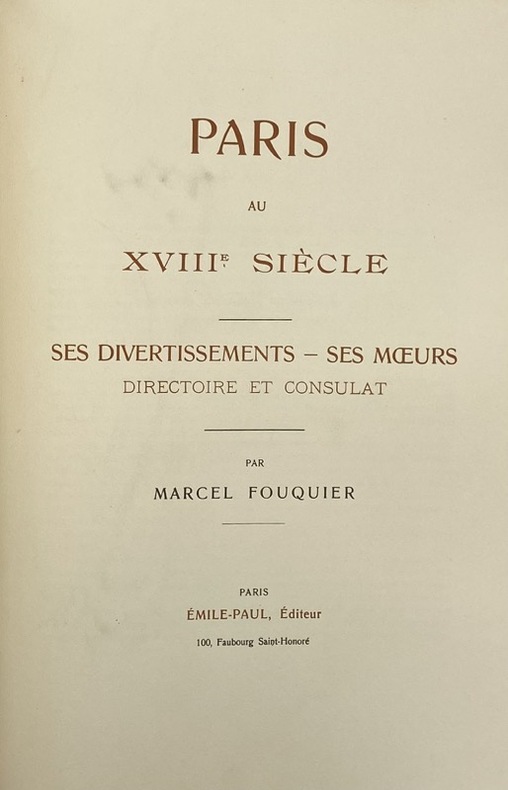 Paris, Emile-Paul sans date, vers 1920, 395x295mm, VIII - 133 + 146pages, planches en couleurs et n/b, illustrations en couleurs et n/b in et hors texte, plans de la ville de Paris. Reliure demi-maroquin bleue. Plats papier marbré. Auteur, titre, filets et fleurons dorés au dos à nerfs. Tranche supérieure dorée. Couvertures et dos conservés. Dos insolé, autrement très belle reliure. Exemplaire sur papier vergé d’Arches, numéroté n.° 146 / 550, pour le tome: ses folies; aussi sur papier vergé d’Arches mais nom numéroté pour l’autre volume. Rousseurs très marginales sur les 2 - 3 premières pages, autrement bel exemplaire.