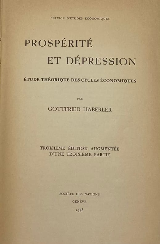 La première édition était parue en 1937, simultanément en français et en anglais.L'économiste autrichien Gottfried von Haberler (1900-1995) ,spécialiste de l'économie internationale, avait été chargé par la SDN d'étudier le caractère cyclique des dépressions économiques et il développa avec Arthur Spiethoff le modèle des phases conjoncturelles. - - VENTE PAR CORRESPONDANCE UNIQUEMENT