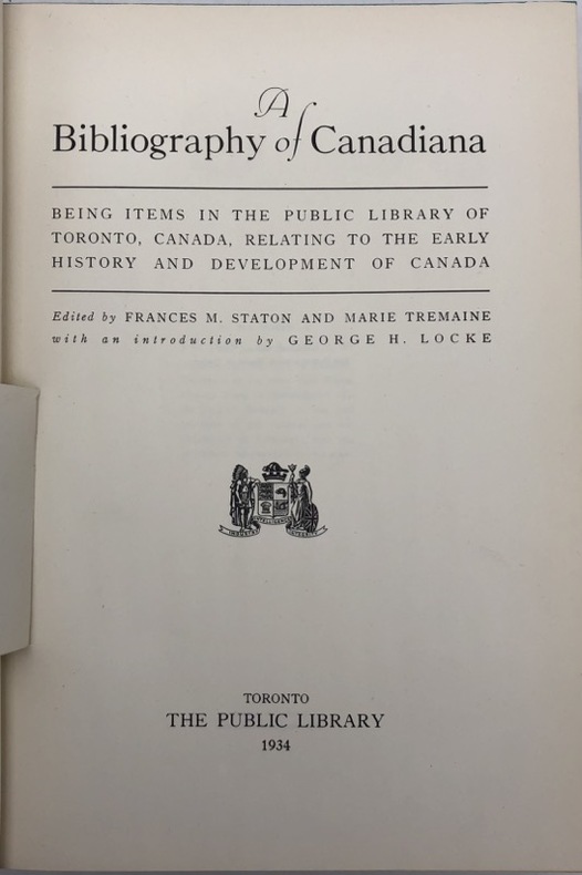 Toronto, The Public library, 1934 - 1986 4 (sur 6) vol. grands in-8, percaline bordeaux, pièces de titre vertes, têtes vertes (reliure de l'éditeur).
