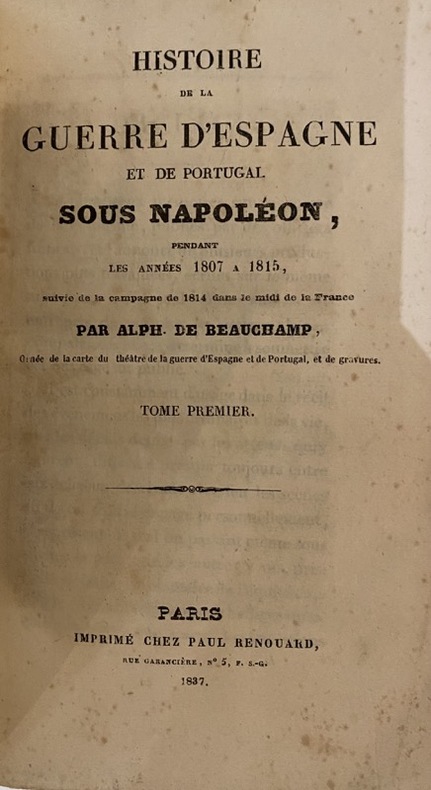 Seconde édition, en fait la remise en vente de la première, avec les deux frontispices ajoutés.Récit de la guerre d'Espagne qui se base sur le témoignage anglais du colonel Jones. - - VENTE PAR CORRESPONDANCE UNIQUEMENT