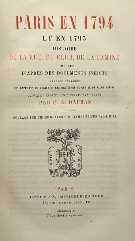 Paris, Plon, 1869 in-8, XX-600 pp., frontispice, 7 planches et fac-similé, demi-percaline verte (reliure de l'époque).