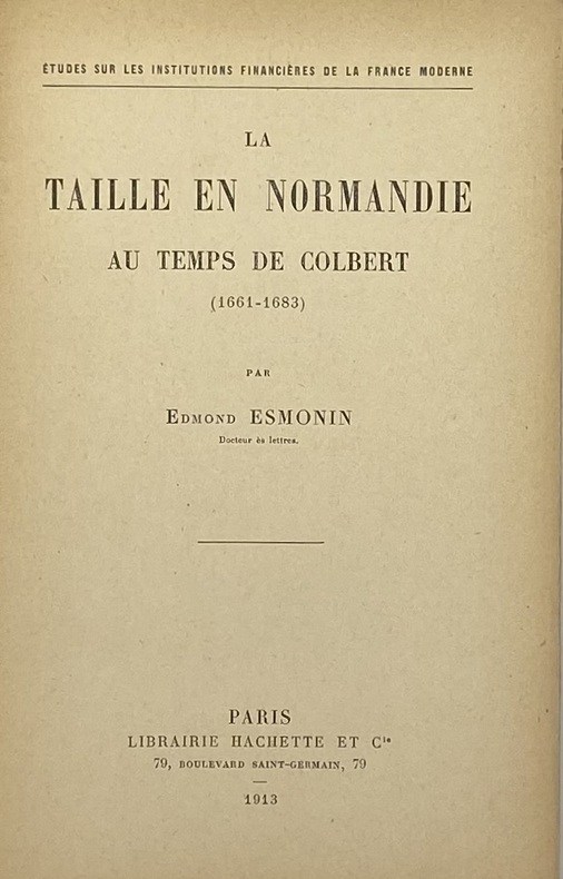 Le brevet de la taille, les exempts (les nobles, la recherche de la noblesse, etc.), les taillables, la perception, etc. L'étude permet de bien comprendre le mécanisme de l'impôt et sa répercussion sur la vie des contribuables et sur la marche du gouvernement. Très bel ex. en parfaite condition. - Frais de port : -France 6,9 € -U.E. 11 € -Monde (z B : 18 €) (z C : 31 €)
