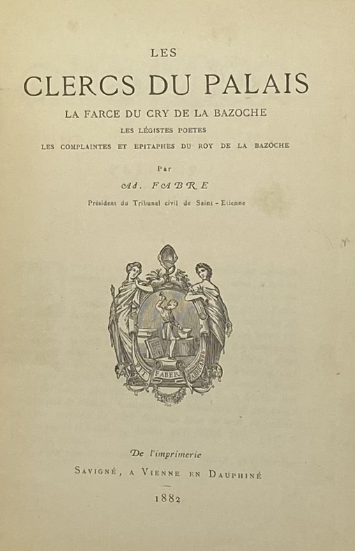 La "Farce du Cry de la Bazoche" est publiée pour la première fois d'après le manuscrit de la Bibliothèque municipale de Soissons