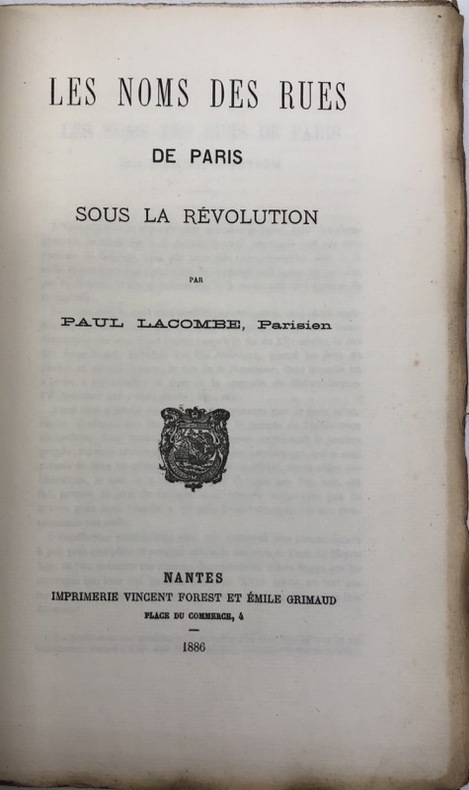 Nantes, Forest et Grimaud, 1886 in-8, 39 pp., broché. Couverture abîmée.