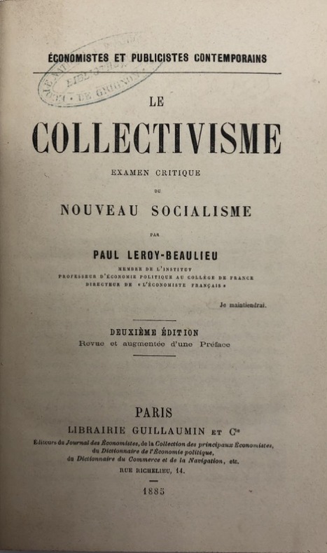 La première édition parut en 1884.L'économiste libéral Paul Leroy-Beaulieu (1843-1916), gendre de Michel Chevalier, composa de nombreux ouvrages théoriques solides et documentés.Ancien exemplaire de l'École d'agriculture de Grignon, avec nom poussé en lettres dorées en queue du dos. - - VENTE PAR CORRESPONDANCE UNIQUEMENT
