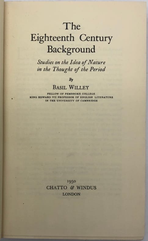 Quatrième édition (la première est de 1940). L'ouvrage fait suite à The Seventeenth century background : Studies in the thought of the age in relation to poetry and religion (1934). - - VENTE PAR CORRESPONDANCE UNIQUEMENT