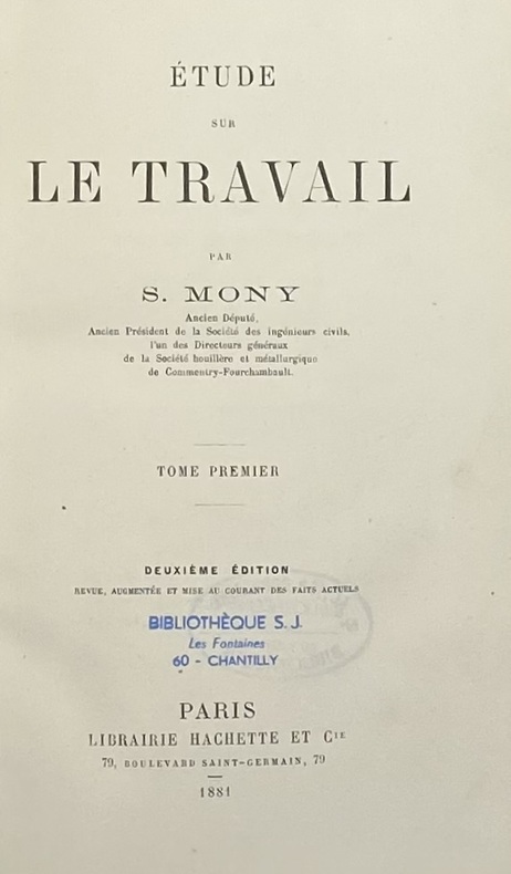 La première édition remonte à 1877 (et elle ne formait qu'un volume).Le saint-simonien Christophe-Stéphane Mony (1800-1884) signait soit S. Mony, soit Stéphane Flachat (du nom de son beau-père), soit Flachat-Mony. Il commença sa carrière industrielle par le grand projet saint-simonien des chemins de fer : faisant partie d'un groupe d'ingénieurs – dont son frère Eugène, et leurs amis Gabriel Lamé et Émile Clapeyron – il participa au projet des frères Pereire de construction d'une ligne de chemin de fer de Paris à Saint-Germain, et entra comme ingénieur à la Compagnie du chemin de fer de Paris à Saint-Germain. - - VENTE PAR CORRESPONDANCE UNIQUEMENT
