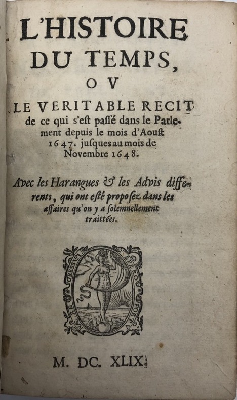 Troisième édition, mais la première au format in-8, de cette importante pièce frondeuse, toute dévouée aux intérêts du Parlement. Elle est la seule, d'après Barbier, à devoir comporter une carte, mais elle ne se rencontre pas dans tous les exemplaires, et elle ne devait sans doute pas faire partie de l'édition, mais être vendue à part.L'attribution est celle donnée par le Père Lelong, et reprise par Leber : Nicolas Johannes Du Portail, bailli de Saint-Denis en France, mourut vers 1668.Barbier II, 794. Moreau, Mazarinades, 1644. - - VENTE PAR CORRESPONDANCE UNIQUEMENT