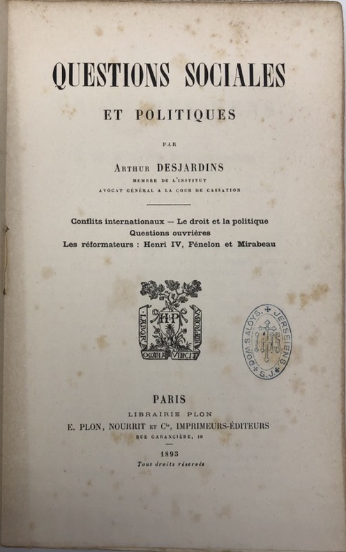 Unique édition de ce recueil de mélanges. À noter une partie intéressante concernant la loi de Lynch aux États-Unis. - - VENTE PAR CORRESPONDANCE UNIQUEMENT