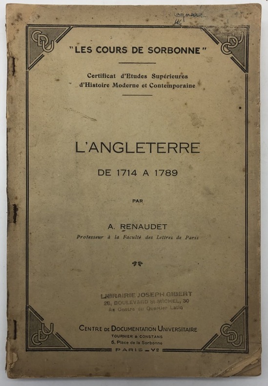 Paris, Centre de documentation universitaire, Tournier & Constans, s.d. (1943) in-4, 379 pp. multigraphiées, quelques annotations manuscrites au crayon de bois, broché. Manquent la seconde couverture et le dos.