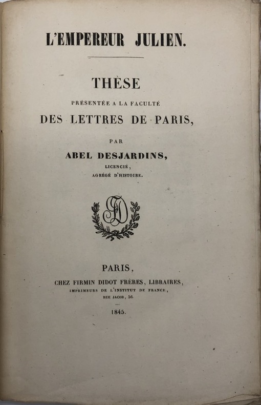 Unique édition de la thèse principale de l'historien Abel Desjardins (1814-1886).Envoi autographe de l'auteur au banquier et collectionneur Benoît Fould (1792-1858), . - - VENTE PAR CORRESPONDANCE UNIQUEMENT