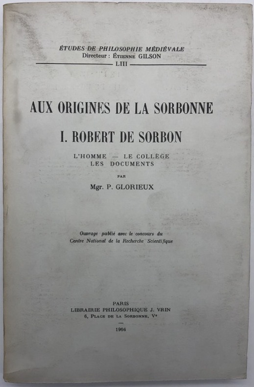 I. Robert de Sorbon. L'homme, le collège, les documents.II. Le cartulaire. Edition critique avec introduction, index et plan dépliant.Le tome II est paru en premier, en 1965. - - VENTE PAR CORRESPONDANCE UNIQUEMENT