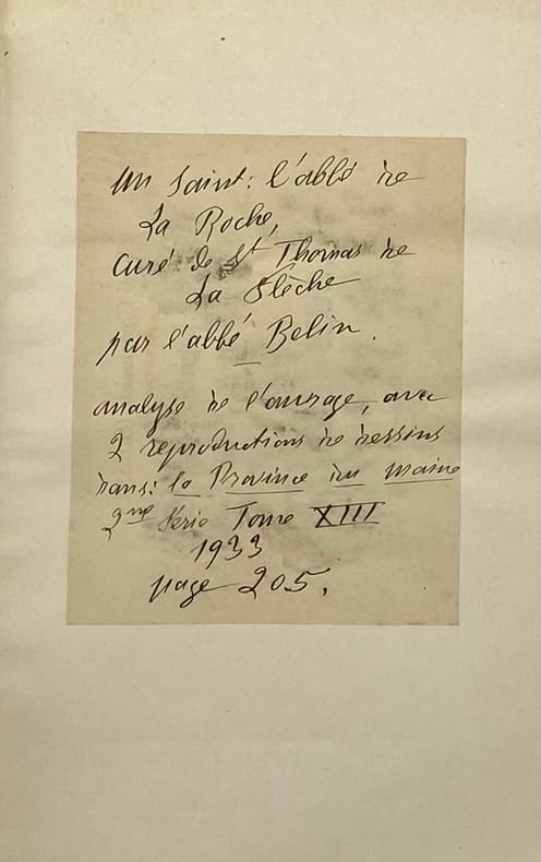 Le Mans, Imprimerie Maurice Vilaire, 1932 gr. in-8, 277 pp., frontispice, ill. in-t., broché. Étiquette et annotation a l'encre sur la couverture. Deux notes manuscrites concernant l'ouvrage ont été contrecollées (l'une en 2e de couverture, l'autre sur la page de garde).