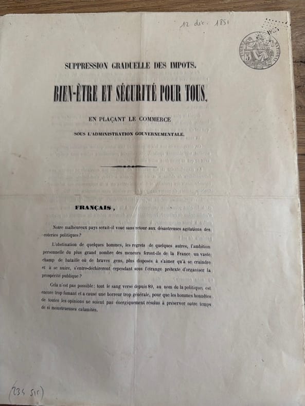 [Paris], Imprimerie de Mme de Lacombe, s.d. (1851) in-4, 8 pp., en feuilles.
