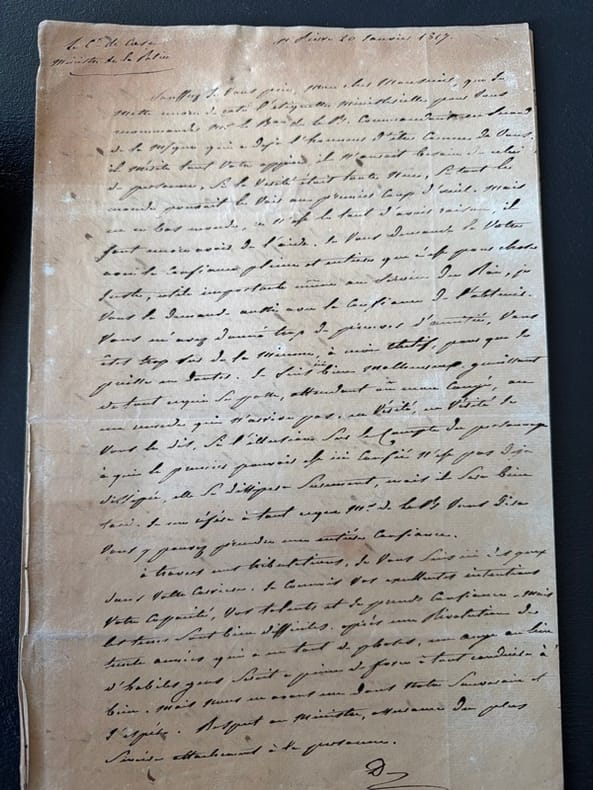 Saint-Pierre, 1817 in-folio, [4] ff. n. ch., couverts d'une écriture fine, cursive, très malaisément lisible (environ 30 lignes par page) en feuilles.