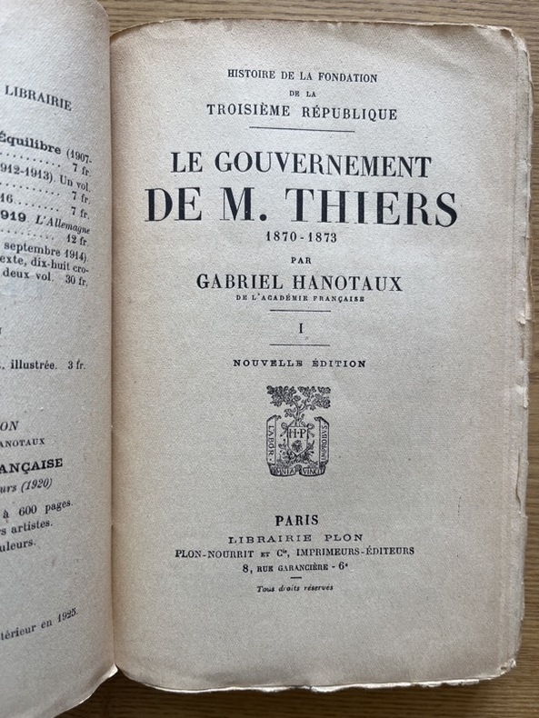 Tomes I et II : Le gouvernement de M. Thiers (1870-1873). Tomes III et IV : L'échec de la monarchie et la fondation de la République (mai 1873-mai 1876). - - VENTE PAR CORRESPONDANCE UNIQUEMENT