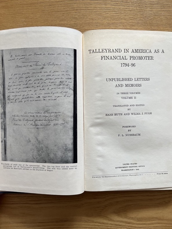 Durant son séjour aux Etats Unis de 1794 à 1796, Talleyrand a entretenu des correspondances avec notamment des banquiers, des investisseurs etc., cherchant à établir des liens économiques entre la France et les Etats-Unis. Il explora également des opportunités d'affaires pour lui-même.Cet ouvrage forme le volume II de : The annual report of the American Historical Association for the year 1941. - - VENTE PAR CORRESPONDANCE UNIQUEMENT