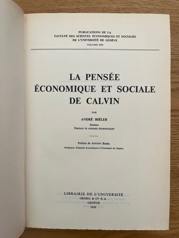 Thèse de André Biéler (1914-2006) théologien, éthicien et économiste suisse. Oeuvre majeure pour comprendre la pensée socio-économique de Calvin. - - VENTE PAR CORRESPONDANCE UNIQUEMENT