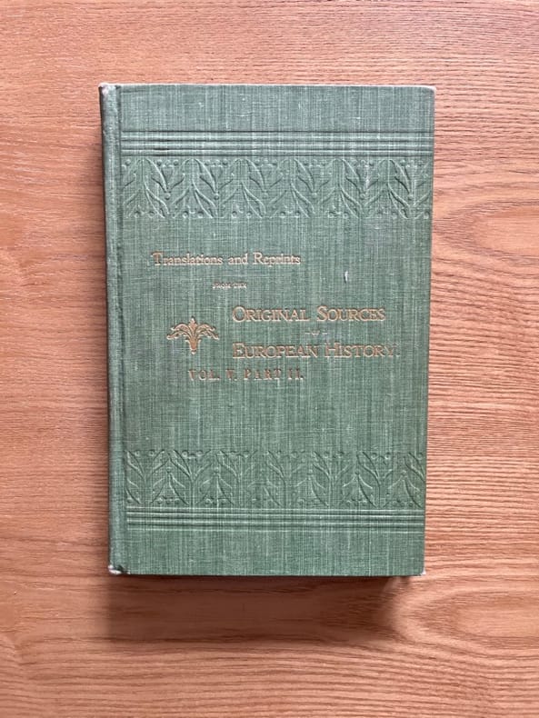 Texte en français puis la traduction en anglais.Forme le n°2 du volume V de Translations and reprints from the original sources of European history. - - VENTE PAR CORRESPONDANCE UNIQUEMENT