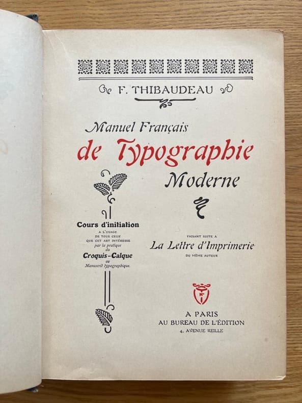 Ouvrage de référence.Francis Thibaudeau (1860-1925), typographe ayant conçu le premier système rationnel de classement des caractères en élaborant les volumineux catalogues typographiques des fonderies Renault et Marcou et de Peignot et Cie. - - VENTE PAR CORRESPONDANCE UNIQUEMENT