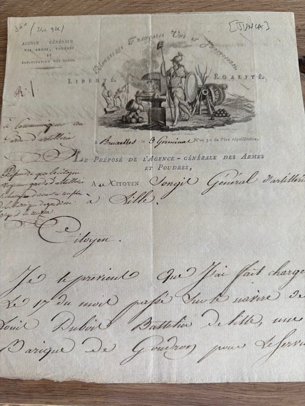 "Je te préviens que j'ai fait charger le 17 du mois passé sur le navire de Louis Dubois battelier de Lille, une barique de goudron pour le service de l'arsenal de Lille". - - VENTE PAR CORRESPONDANCE UNIQUEMENT - LIEN DE PAIEMENT, NOUS CONSULTER.