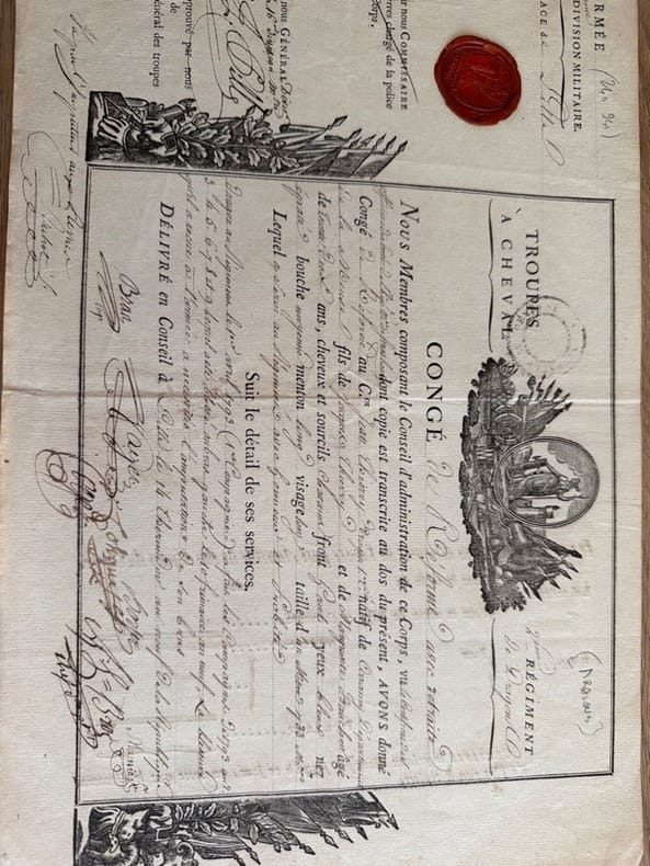 Formulaire pré-imprimé rempli manuscritement, accordant congé définitif pour raisons de santé (amputation d'un bras) à Jean Thierry, originaire de Arrancy-sur-Crusne (Meuse), âgé de 32 ans. - - VENTE PAR CORRESPONDANCE UNIQUEMENT - LIEN DE PAIEMENT, NOUS CONSULTER.