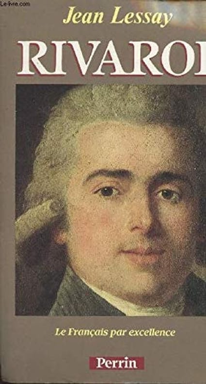 Sans lieu, ni date [Seraincourt] (16, rue Côtes-Denise, 95450 Vigny) : Ordre européen des chevaliers de Gutenberg, 1984); 78-Grosrouvre : Impr. J. P. Vibert ; in-4° en feuilles.4 gravures originales volantes de Michel Otthoffer, sur le texte de Rivarol, avec à la première un portrait de Rivarol au dessus du texte. Texte et portrait en blanc sur fond brun rouge, l'ensemble sous chemise imprimée. La première gravure est signée par l' artiste et justifiée 83 / 250 .Rare suite tirée à 250 exemplaires.