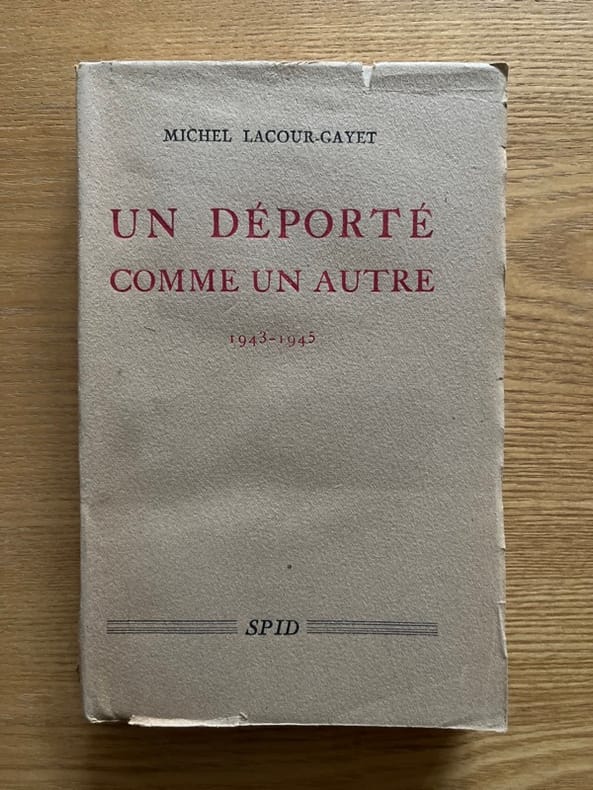 "Réfractaire au Service du travail obligatoire, Michel Lacour-Gayet [le fils de Jacques Lacour-Gayet] est arrêté par la Gestapo le 5 septembre 1943 à Paris alors qu'il s'apprête à gagner l'Espagne clandestinement. Emmené rue des Saussaies pour y être interrogé, il ne tente pas de cacher la vérité sur ses intentions et se retrouve emprisonné à Fresnes. Décrite avec forces détail, la rudesse de la vie carcérale qu'il découvre ne l'empêche pas de connaître des instants de « gaieté » (85) au contact de deux jeunes hommes de son âge avec qui il se lie d'amitié. Conduit le 16 novembre 1943 au camp de Royallieu, il en est brutalement extrait au début du mois de décembre et dirigé vers la caserne de la rue de la Pépinière, centre de rassemblement pour les départs des travailleurs en Allemagne. Michel Lacour-Gayet se résigne alors à accepter la proposition qui lui est faite de partir travailler en Allemagne dans le cadre du STO, profitant des trois jours de liberté qui lui sont octroyés afin de fêter Noël avec ses parents. Et pourtant, de retour rue de la Pépinière le 27 décembre 1943, il se voit interné sans explication à la prison du Cherche-Midi puis réintègre le camp de Royallieu le 3 janvier 1944. Le 20 du même mois débute un atroce voyage en wagons à bestiaux qui s'achève à Buchenwald. Placé en quarantaine, Michel Lacour-Gayet découvre avec effarement le fonctionnement du système concentrationnaire qu'il expose avec un soin méticuleux. Tombé gravement malade, il parvient à se rétablir puis est affecté à de durs travaux de terrassement. Tentant un jour d'échapper à ce harassant travail, il est découvert par un kapo russe qui l'inscrit pour un départ en kommando. Il parvient le 4 avril 1944 au camp de Hadmersleben qu'il décrit avec un regard quasi clinique. Le sort des déportés belges et français y est terrible : ils sont maltraités par les déportés russes et polonais qui usent d'une violence égalant celle des kapos et des SS. L’auteur peut heureusement compter sur quelques camarades avec qui il travaille à la transformation d'une mine de sel en usine d'aviation. Son sort s'améliore quelque peu lorsqu'il est affecté dans la dite usine où il côtoie des civils allemands qui l'informent des avancées de l'armée Rouge et lui donnent parfois des cigarettes ou de la nourriture. Le 10 avril 1945, les déportés du camp de Hadmersleben sont évacués à pied et embarqués quatre jours plus tard sur des péniches naviguant sur l'Elbe, sans but apparent. Le 8 mai 1945, les déportés se réveillent pour constater l'absence de leurs gardiens. Michel Lacour-Gayet retrace à partir de cette date son itinéraire, en le retranscrivant tel quel, d’après les notes prises au jour le jour sur un carnet déniché par hasard. Se trouvant dans la zone soviétique, lui et ses camarades parviennent par leurs propres moyens à gagner la zone américaine et la ville de Pilsen d'où un avion les rapatrie vers la France, le 28 mai 1945." (Manuel Valls-Vicente, « Ecrits de Guerre et d’Occupation » EGO 1939-1945)
