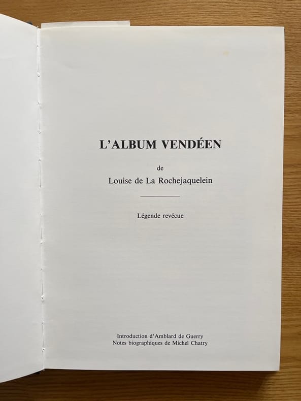 S.l., Association des descendants des La Rochejaquelein, 1992, in-4, non paginé, 59 feuillets, portraits, toile bleue à la Bradel (reliure de l'éditeur). Reliure tachée.