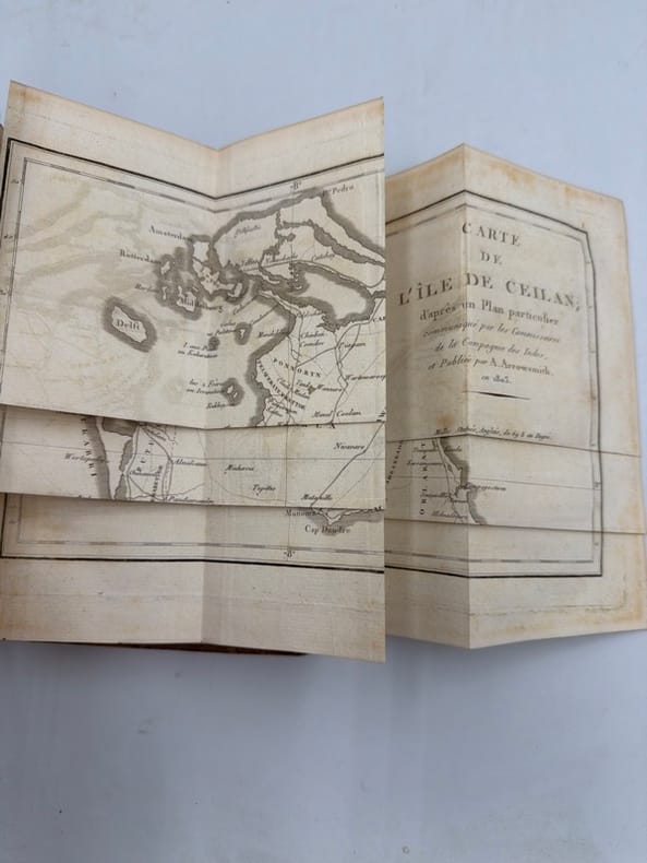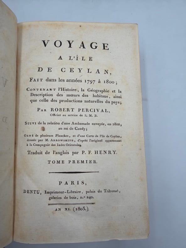 Première édition française, publiée la même année que l'édition originale anglaise.Colonisé successivement par les Portugais et par les Hollandais, Ceylan tombe aux mains de l'Angleterre en 1795. La possession de cette île est reconnue aux Anglais en 1802, par le traité d'Amiens. L'année suivante, les nouveaux colons tentent de soumettre le royaume de Candy, le seul royaume indigène a avoir maintenu son indépendance sur l'île. L'Angleterre vient à bout de cette résistance en 1815.L'auteur du Voyage de Ceylan dresse l'état des lieux de l'île au tout début du XIXe siècle, afin de mieux convaincre ses compatriotes des avantages à retirer de la possession de l'île de Ceylan, que ce soit d'un point de vue politique et stratégique aussi bien que commercial.Brunet, IV, 489-490 et Quérard, VII, 43 mais édition non citée. - - VENTE PAR CORRESPONDANCE UNIQUEMENT - LIEN DE PAIEMENT, NOUS CONSULTER.