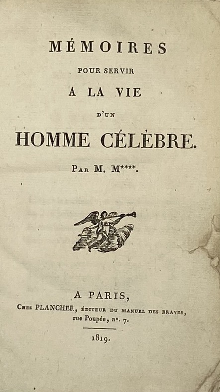Les mémoires pour servir à la vie d'un homme célèbre se composent de 4 parties à la pagination indépendante, à savoir : Napoléon dans sa vie privée (2 parties) - Napoléon, homme public - Napoléon à Sainte-Hélène. Barbier, Dictionnaire des Ouvrages Anonymes, III, 235. !!! !!! Du 3 octobre au 24 octobre il n'y aura pas d'expédition de colis: le libraire est en voyage. La librairie reste ouverte et nous répondrons sporadiquement aux emails. Merci pour votre compréhension. ––> From 3 October to 24 October, there will be no parcel deliveries as the bookseller will be travelling. The bookshop will remain open and we will respond to emails sporadically. Thank you for your understanding.