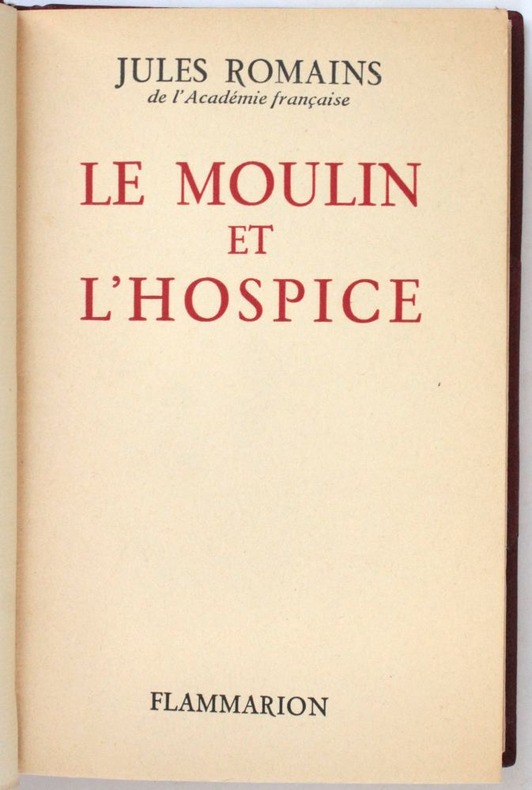 UN REFUGE APRÈS LES HOMMES DE BONNE VOLONTÉ. Édition originale. Mention de dixième mille à la couverture. Tirage courant après 55 exemplaires sur pur-fil, 110 sur chiffon Lana et 500 sur Alfa. Envoi autographe signé : « à Monsieur Louis Meyzen / en amical souvenir / Jules Romains » L'intrigue se déroule en Bourgogne au début du XVIe siècle : deux voyageurs logés dans un moulin y entendent la rumeur de mystérieuses assemblées. Dos insolé avec petites déchirures en tête et en queue, légers vestiges d'adhésif (?) au premier plat de couverture.