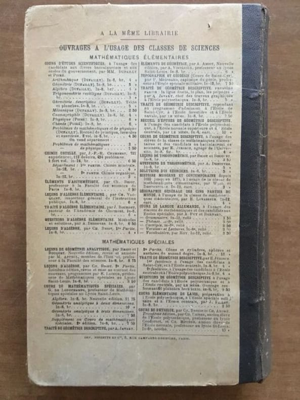 Delagrave 1900 1 In-Octavo Relié 800 pp. Fort in-octavo relié cartonnage de l'éditeur, dos toilé. Edité par la Librairie Ch. Delagrave, Paris, en 1900. Dix-septième édition. 800 pages + tables.Bon état général, reliure solide, contenu propre. Couverture défraîchie, usure aux coins et à la coiffe, petite déchirure à quelques feuillets vers la page 480. Note à la plume en page de faux-titre. Rousseurs sur les tranches, gardes et pages liminaires. Photos sur demande. [Authon sciences].