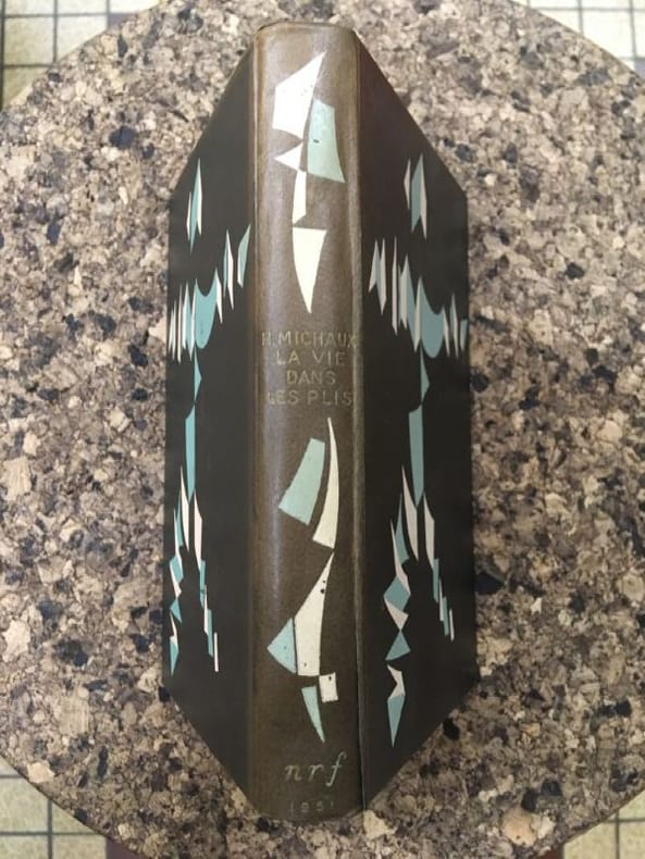 Paris Gallimard 1949 In-12, maroquin gris orné d'un cadre serti d'un filet doré et d'un filet poussé à froid, et composé de cinq bandes verticales mosaïquées en papier bois aux teintes havane, vert amande et tabac, portant le titre de l'ouvrage en lettres dorées sur cinq pièces triangulaires mosaïquées en maroquin gris réparties de part et d'autre de la bande centrale; nom de l'auteur et titre de l'ouvrage poussés or sur le dos sans nerfs; doublures et gardes de papier glacé gris perle, tête dorée, non rogné. Etui (A. & R. Maylander).Edition en partie originale. Un des 43 exemplaires numérotés sur papier vélin Lafuma, seul tirage sur grand papier avec 13 vergé de Hollande. Elégante reliure exécutée dans l'atelier des Maylander, signée des initiales d'André et Roger, les fils d'Emile Maylander qui décéda en 1959. De la bibliothèque A. Rodocanachi (ex-libris).