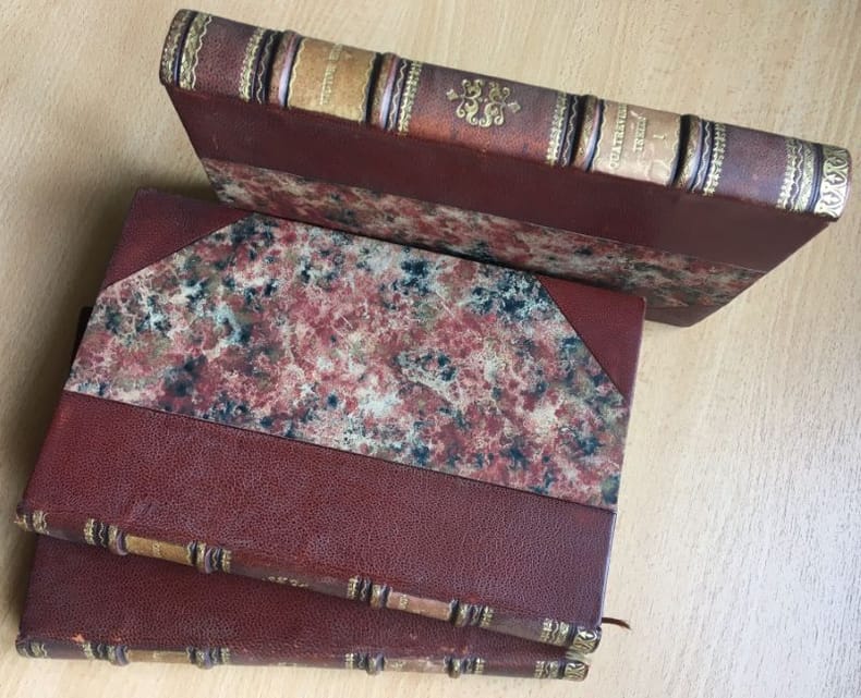 12,5x20,5 cm, 459 pages, très bon état, plein cuir grenat escarboucle, dos avec pièces de titre et entre nerfs dorés, petites taches de peinture sur le recto et le dos, tranchefile et signet, plats enluminés, portrait en frontispice, Collection distribuée par le Cercle du Bibliophile, imprimé en Suisse, huit eaux-fortes de Frédéric Régamey exécutées pour l'édition originale de 1893 et quatre gravures à pleine page anonymes illustrant les événements de 1793, provenant du Cabinet des Estampes de la Bibliothèque Nationale à Paris, ouvrage réalisé d'après les maquettes de Gilbert Gilliéron -