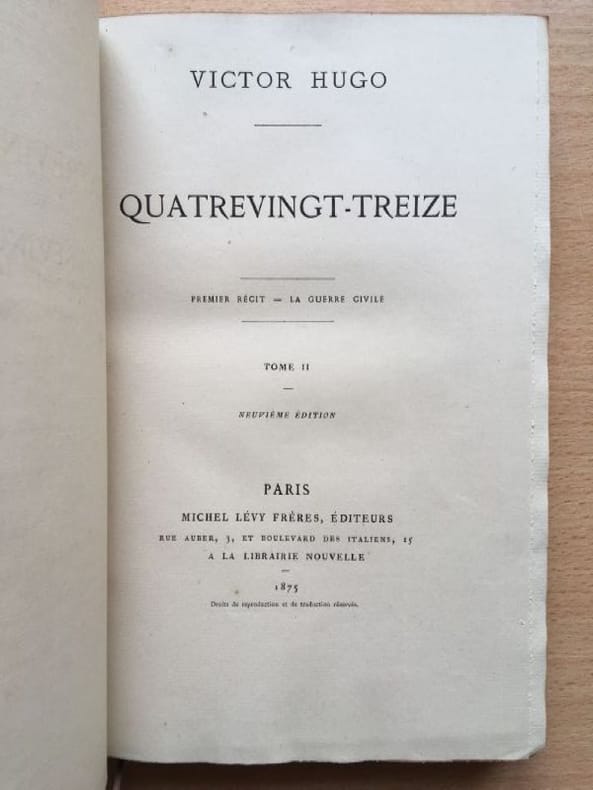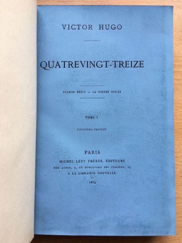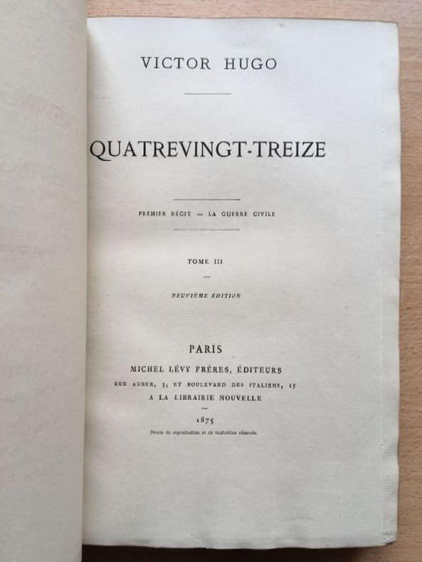Hugo Victor V.Hugo. Quatrevingt treize Ninety-third year. In Russian (ask us if in doubt)./Hugo VictorV.Gyugo. Quatrevingt treizeDevyanosto tretiy god. In 3 Volumes 6th Edition Paris Michel Levy Freres 1874 Life Edition. SKUalb3d3981f9a959270f.