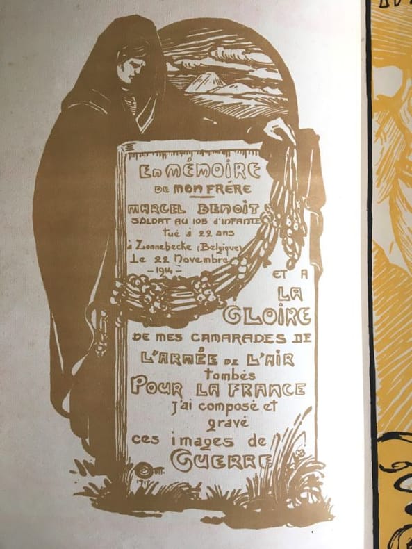 Né en 1879 à Clermont-Ferrand et mort en 1936, Maurice Busset est un peintre et xylographe important de son époque, s'illustrant dans la peinture de paysage de son Auvergne natale, les scènes de genre et de traditions populaires paysannes. Engagé dans l'aviation pendant la Première Guerre mondiale, Il devient peintre militaire officiel. Cet album de planches gravées représente une oeuvre majeure de son travail d'artiste pendant la guerre. Après la guerre, Maurice Busset officie comme professeur de dessin au lycée Henri IV à Paris, puis comme directeur de l'École des Beaux-arts de Clermont-Ferrand. Merci de nous contacter à l'avance si vous souhaitez consulter une référence dans notre boutique à Authon-du-Perche.