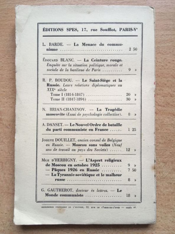 Paris, Spes 1928 In-12 19 x 12 cm. Broché, couverture beige, auteur & titre en noir & rouge sur le dos et le premier plat, IV-114 pp., table des matières. Exemplaire en bon état d’un ouvrage peu courant.