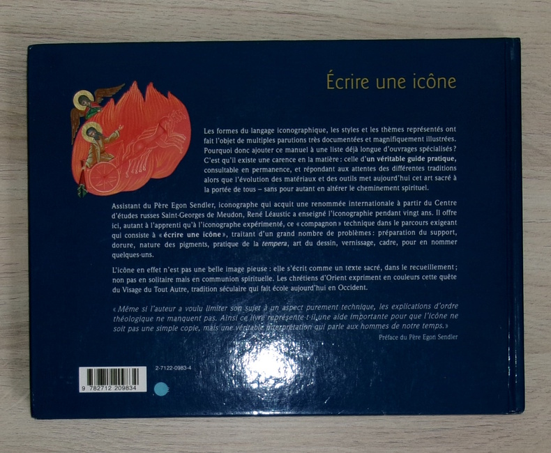 Editions Mediaspaul, 2006. Préface du Père Egon Sendler. Il s’agit d’un guide pratique traitant d’un grand nombre de problèmes : préparation du support, dorure, nature des pigments, pratique de la tempera, art du dessin, vernissage, cadre,... Il répond aux attentes des différentes traditions sans altérer le cheminement spirituel pour que l’icône soit une véritable interprétation et non une simple copie.