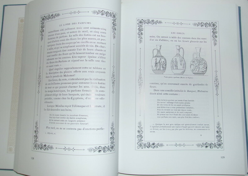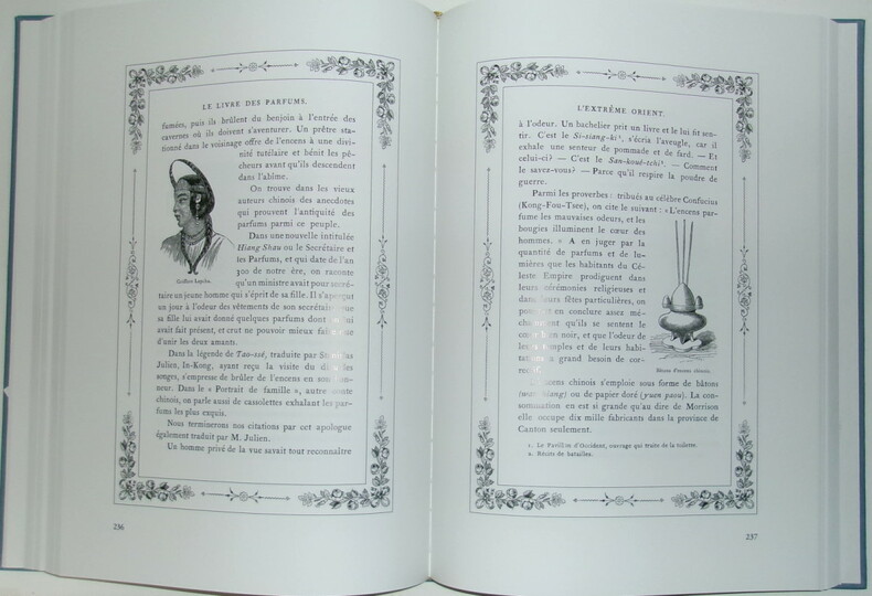 Editions Bibliothèques des Introuvables, 2007. Fac-simile de l’édition de 1870, avec préface d’Alphonse Karr. Tirage à quelques 700 exemplaires. L’histoire des parfums chez tous les peuples et à travers le temps. Un bel ouvrage avec plus de 400 illustrations de A. de Neuville, Duhousset, Chéret, etc. dont des hors texte en couleurs.