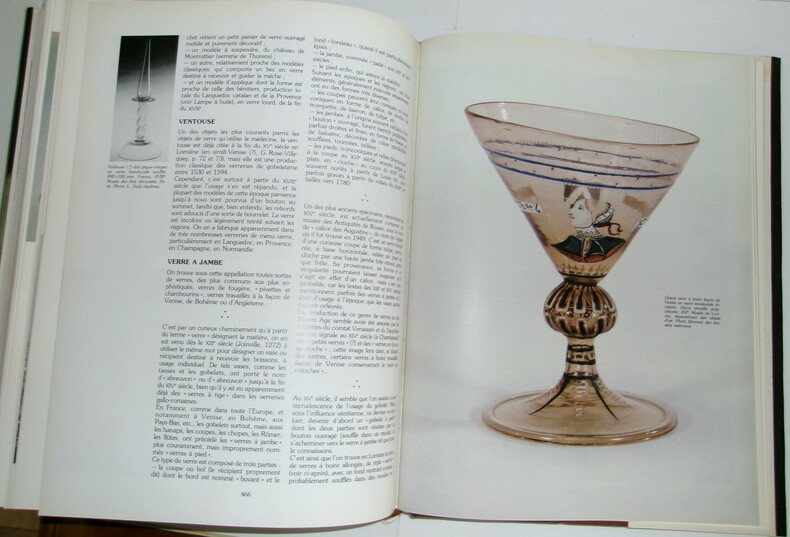 Ouvrage abondamment illustré, 650 illustrations en noir et en couleurs dans et hors-texte. " Cet ouvrage fixe l'état actuel de nos connaissances sur le verre creux français du XVIè au XVIIIè siècle. Il est divisé en trois parties. La première expose les méthodes de fabrication et de décor du verre. La deuxième retrace l'histoire de la verrerie en France, envisagée région par région. Enfin, la troisième partie traite des objets du verre, classés dans l'ordre alphabétique. ". BEL EXEMPLAIRE DE CET OUVRAGE DE RÉFÉRENCE. POIDS 3,425 kgs Photos sur demande.