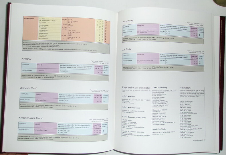 Editions Jacques Legrand, 1985. Collection « Le Grand Bernard des Vins de France » dirigée par Bernard Ginestet. En 2 volumes : Les villages de la Côte Bourguignonne (états parcellaires : appellations, lieux-dits, superficies, propriétaires) et un atlas illustré de cartes en couleurs.