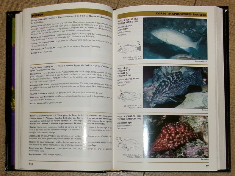 Editions P. L. B. 1997. Livre illustré de schémas et de nombreuses photos en couleurs. Un outil complet pour identifier les poissons observés sur les récits, les tombants, les épaves des Caraïbes, des Bahamas et de Floride. Un ouvrage de référence avec un texte précis et une iconographie de qualité.