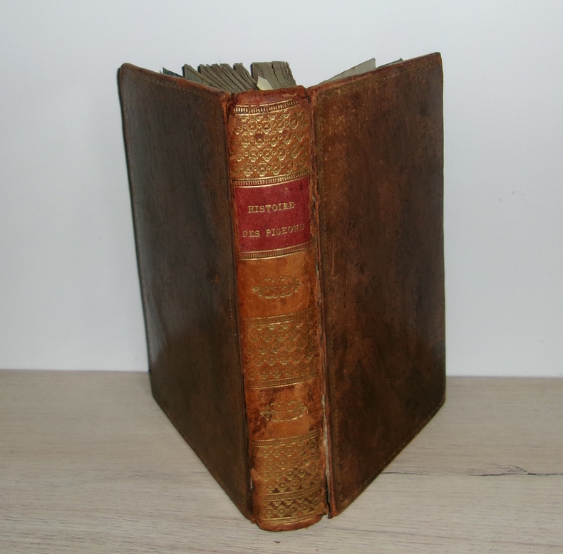 Paris, Audot, Paris, Audot1878 ; in-12, broché, couverture illustrée. Z ff., III pp., 258 pp., 1 f. table.Deuxième édition d’un classique qui avait d’abord paru en 1867. 46 illustrations dans le texte.Caractères zoologiques des pigeons, races zoologiques, origine des pigeons domestiques, races domestiques, historique, pigeons de volière, de colombiers, ennemis et maladies - Pigeons messagers (historique, instinct de retour et faculté d’orientation, mécanisme du vol, sport colombophile), les pigeonniers militaires, la tourterelle, les espèces de colombes à acclimater - Bibliographie des pigeons, statuts de la Soc. Colombophile de Saint-Michel à Bruxelles.Cornet et Malagies. Étude bibliographique sur les animaux de basse-cour n° 823. Dos fendu.