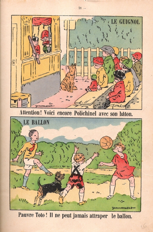 Epinal Pellerin 0 Grand In-8 Sans date , vers les années 1950 . Lithographies en couleurs des imageries d'Epinal . On y décline l'alphabet avec une image par lettre et des animaux en couleurs sur la page en regard ( Isard , Jaguar , Kangourou , Lapin ) . Puis on met les accents et de petites phrases illustrent les mots ( gâteau , pêche ) . Enfin on apprend à compter jusqu'à dix . Les quatre saisons de l'année . Un jeu avec l'alphabet et des chansons avec leur partition , des poésies ( La Fontaine ) et les moyens de locomotion , les défauts , les qualités . Agraphé séparé du cartonnage de couverture , légers défauts en 1° plat visible sur la photographie . Anciens manuels d'école .- 30 p. , 350 gr.
