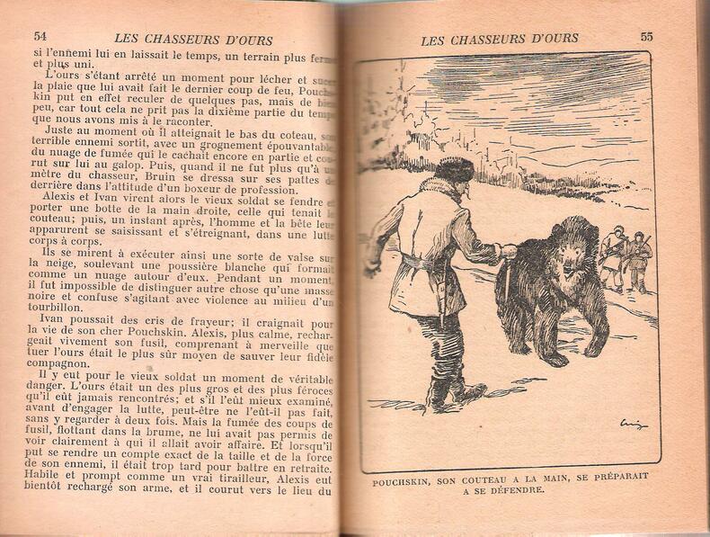 sd, Librairie Hachette, in-8 cartonné de 340 pages, couverture toilée rouge, titrage doré et décors dorés sur le dos et le 1er plat, Bibliothèque rose illustrée - Bruin les chasseurs d'ours, traduit de l'anglais avec l'autorisation de l'auteur par A. Letellier, ouvrage illustré de 8 vignettes | Etat : bon état, coins et coiffes un peu frottés (Ref.: ref88721)