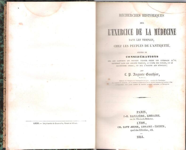 Paris / Lyon Baillière / Savy 1844 in-12° Demi-reliure en cuir vert à 9 nerfs . Edition originale de 1844 sur bon papier mais comportant des mouillures en partie haute sans altération du texte . Histoire Antiquité - 264 p. , 450 gr.