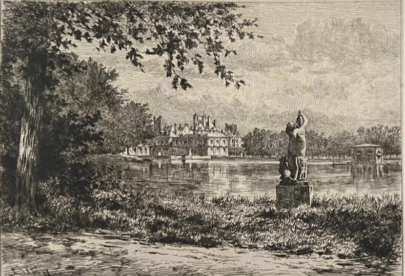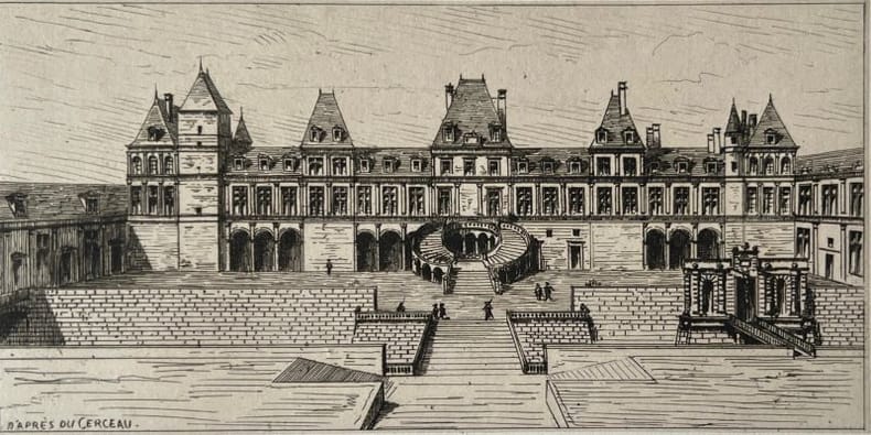 Ouvrage sur le château de Fontainebleau. Usures, déchirures et léger manques à la couverture.