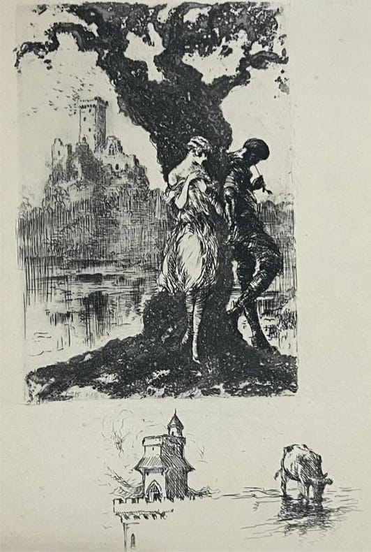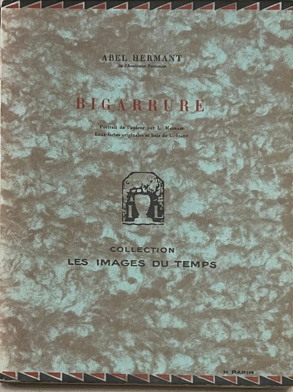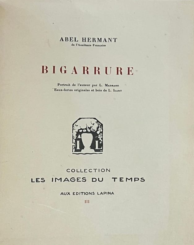 Portrait de l'auteur par L. Madrassi. Eaux-fortes originales et bois de L. Icart. Fac-similé d'un manuscrit de l'auteur. Edition originale, troisième de la collection ˮ Les images du tempsˮ des éditions Lapina, un des 30 exemplaires sur Japon Impérial réimposés (après 70 avec suites) numérotés (n°77/100) et avant 1000 exempalires sur vergé de Rives. Exemplaire établi dans une agréable reliure (plats et dos de couv conservés) en demi-chagrin brun à coins, dos à quatre nerfs avec titre - auteur - motif or, et tranche de tête dorée en bon état (coins et mors des plats très légèrement frottés).